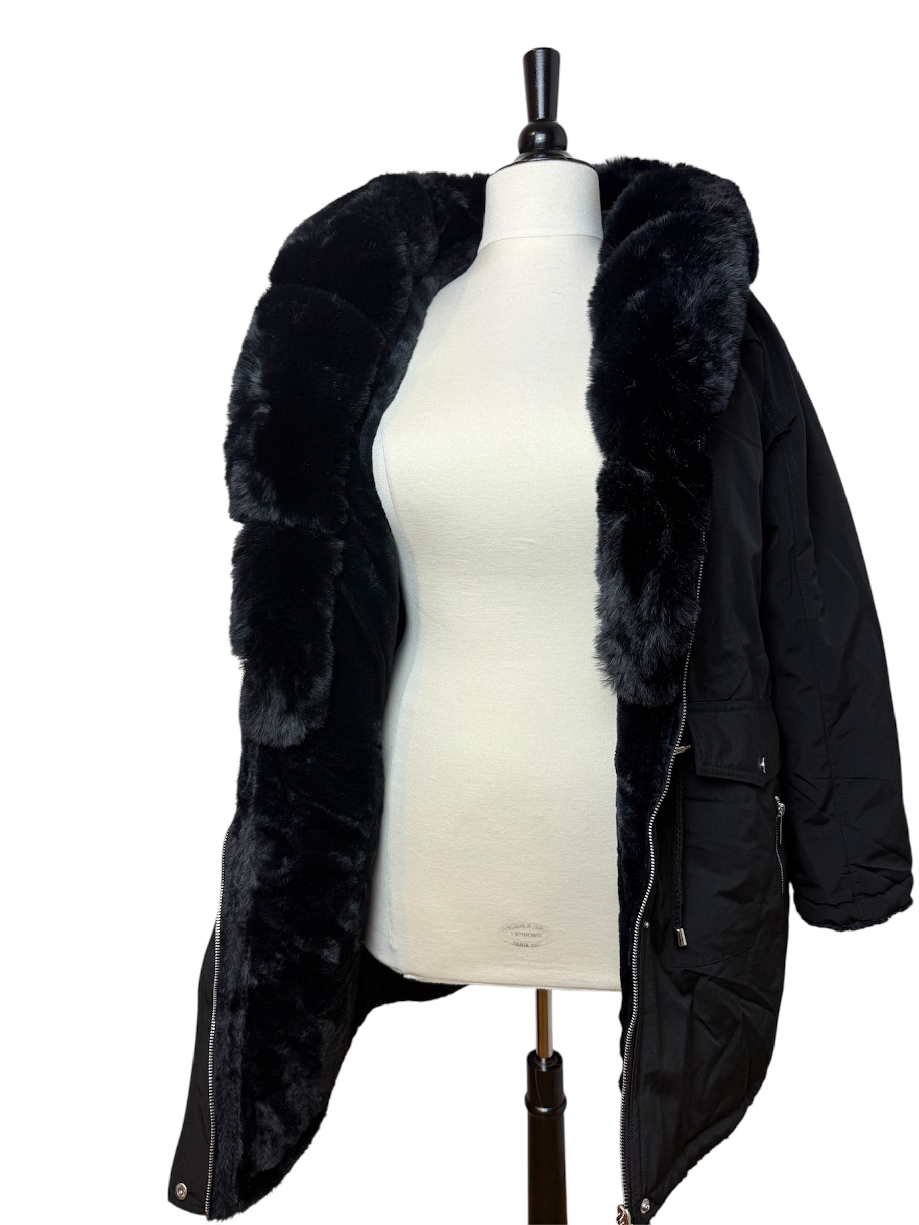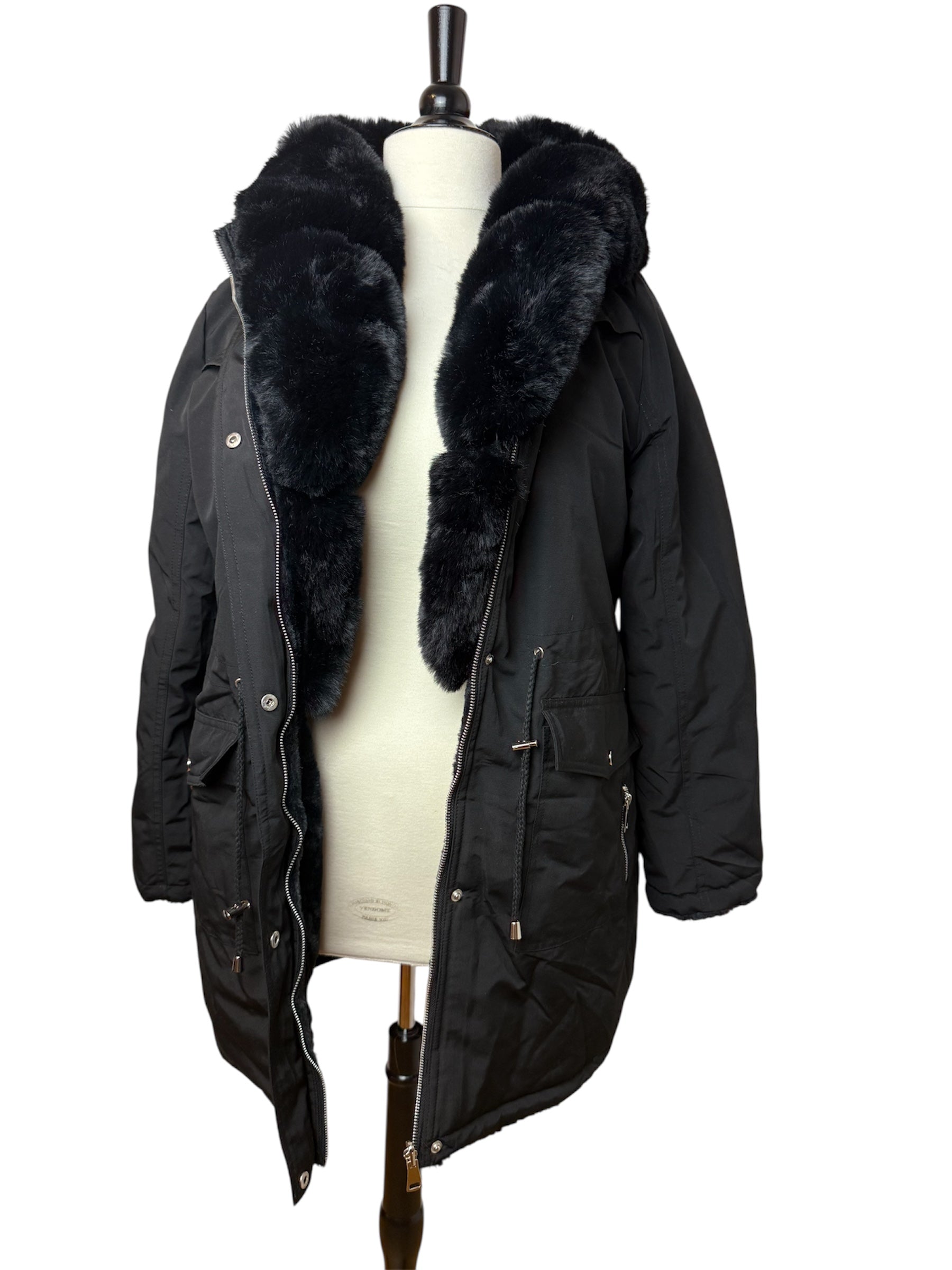 100% polyester, doublure 100% polyester. Fourrure synthétique.