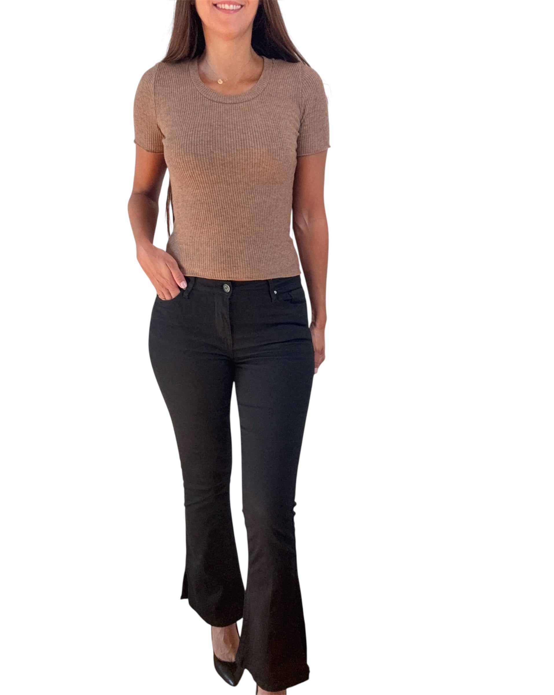 Un essentiel du dressing revisité avec une touche moderne. Ce jean noir à la coupe légèrement évasée sublime la silhouette en allongeant visuellement la jambe, tout en restant ultra confortable grâce à sa matière douce et stretch. Taille mi-haute, il épouse les formes sans comprimer, et se marie aussi bien avec un tee-shirt ajusté qu’un blazer structuré.